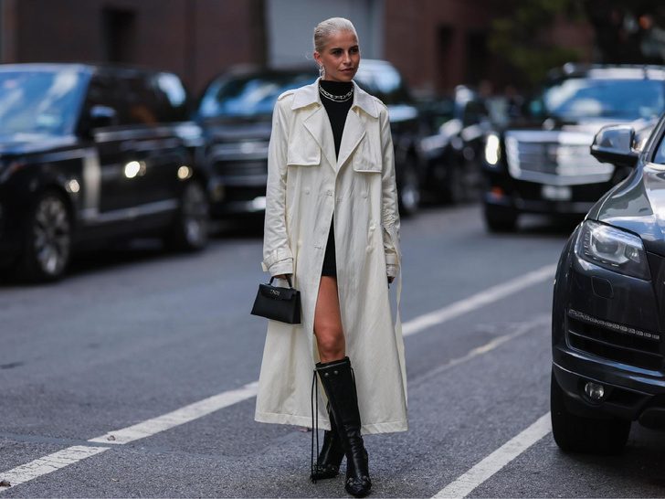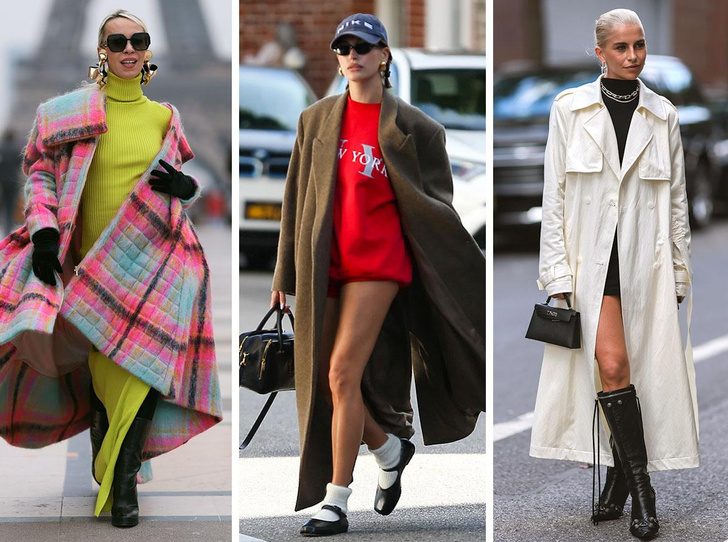 Еще один актуальный способ стилизовать пальто — выбрать трендовую обувь. Например, сделайте акцент на самом модном фасоне — сапогах с широким голенищем, низким каблуком и квадратным мысом. Фэшн-инфлюенсеры сочетают верхнюю одежду и с лакированными туфлями, и со слингбэками, надевая их поверх цветных колготок, красных, белых или зеленых.