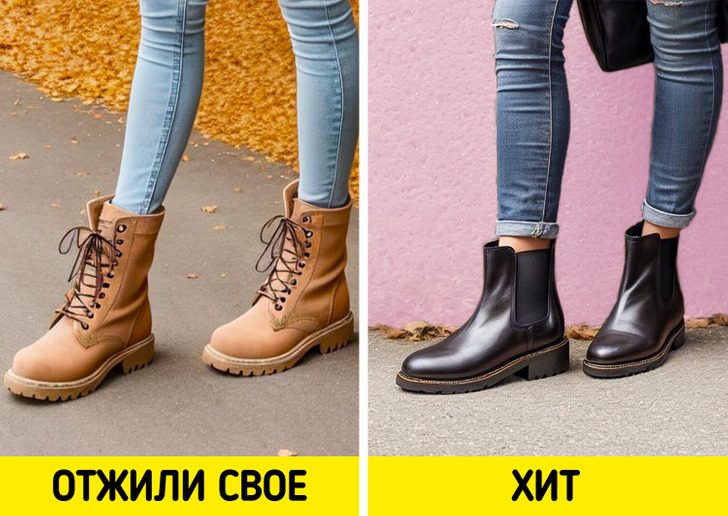Как мы уже сказали, массивная обувь — не в моде в этом году. То же самое касается и ботинок. Особенно устарели модели с тракторной подошвой. А вот заменить их можно элегантными челси — это обувь по щиколотку с удобными эластичными боковыми вставками. Они могут быть как кожаные, так и из замши.
