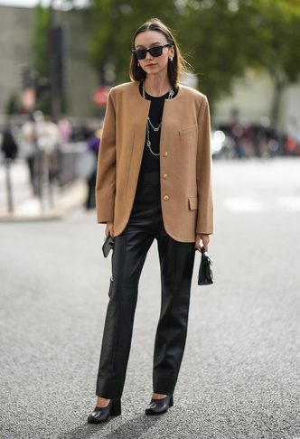 Качественные прямые брюки из экокожи созданы для тех девушек, которые предпочитают более узкие варианты поясных изделий и не любят оверсайз штанины. Такие фасоны никогда не выйдут из моды — это покупка на много лет вперед. Сегодня не требуется обязательного микса прямого низа и объемного верха, поэтому модель можно сочетать даже с водолазкой или лонгсливом. Обувь подойдет как на плоском ходу, так и на каблуке.