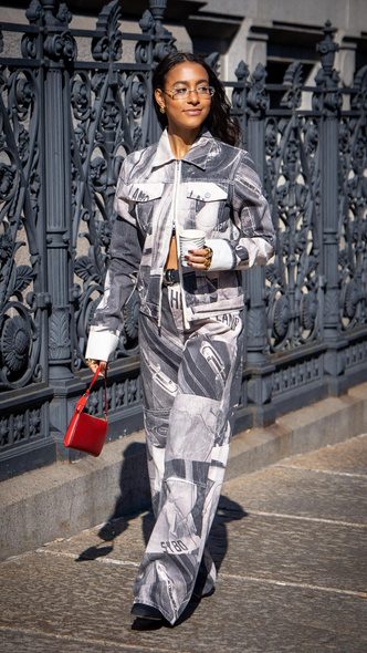 Старайтесь не носить такую сумку с белой обувью, лучший компаньон для нее — серые или черные туфли. Максимально выигрышно аксессуар в жемчужных тонах смотрится в серых монохроматических образах. С черным цветом он образует слишком сильную контрастную пару, которая не всегда выглядит уместно, а вот с коричневой палитрой стоит быть аккуратней, образ может казаться заурядным.