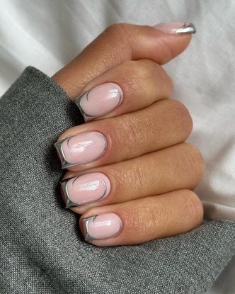 Один из самых ярких и запоминающихся трендов последних двух лет — металлический маникюр. Блестки на ногтях всегда смотрятся красиво и привлекают много взглядов. Однако металлический блеск смотрится совсем иначе, он не такой яркий и кричащий, но при этом моментально выделяется на фоне других дизайнов. Стилизовать «диско френч» очень просто: такой акцентный нейл-арт отлично смотрится с тотал блэк образами и серебряными аксессуарами.