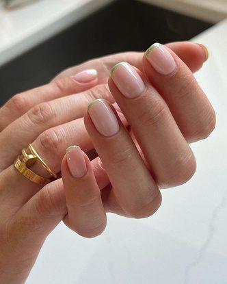 Маникюр «аура» не покидает списки нейл-трендов уже пару сезонов. С ним легко экспериментировать, пробуя новые сочетания и дополняя градиент минималистичными дизайнами. Для зеленой «ауры» вы можете использовать не только зеленые, но и синие оттенки — эти цвета гармонично сочетаются между собой.