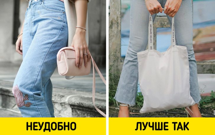 Маленькие сумки выглядят стильно и аккуратно, но помещаются в них в лучшем случае телефон и помада. В нынешнем сезоне практичность берет верх, поэтому вместе с любимыми джинсами можно смело носить сумки-тоут.
