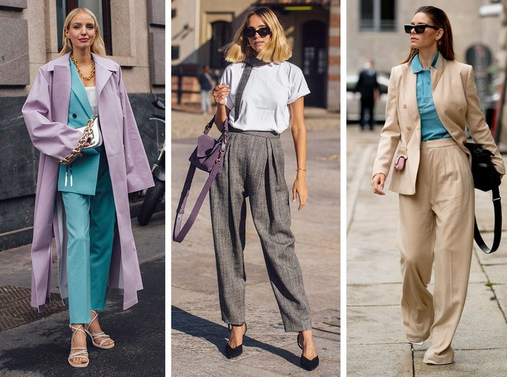 Брюки со стрелками — классика на все времена. Заглаженные или строчные стрелки помогают вытянуть силуэт и сделать ноги визуально более длинными. Наиболее эффектно будет смотреться длинна макси до самой стопы и 7/8. В случае последних, дополнительным секретом бесконечных ног станут туфли с острым мысом на высоком каблуке.