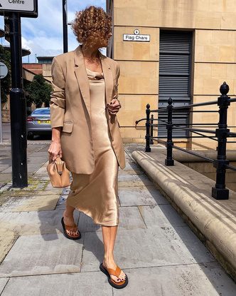 Если вы хотите надеть платье с открытыми плечами или на тонких бретелях, но комплексуете из-за полных рук, то есть отличное решение — добавить к платью oversize-жакет или объемный кардиган. Этот же метод подойдет и тем, кто хочет скрыть живот или бедра. Можно выбрать жакет контрастного оттенка платью или базовый белый, бежевый или серый. Надевая жакет и платье в одной цветовой гамме, вы рискуете испортить фигуру и прибавить к талии и бедрам лишние сантиметры.