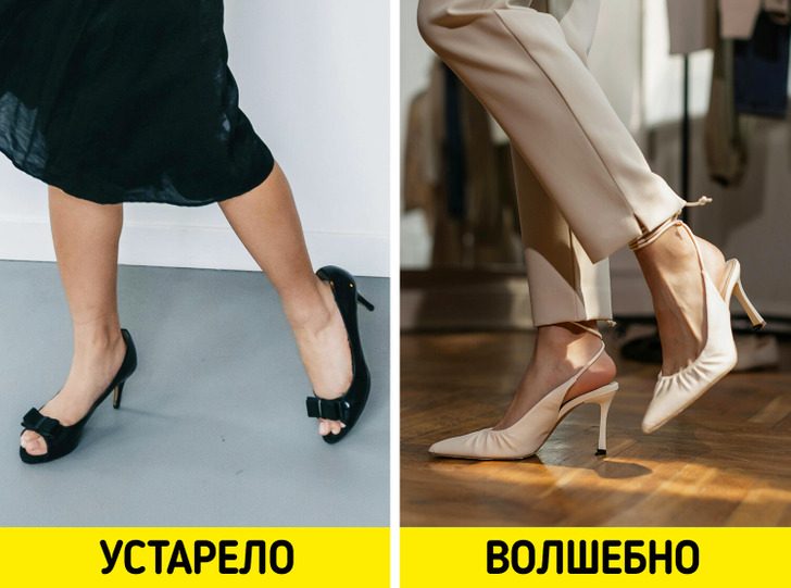 В этом году модные дизайнеры так и сяк делают пальчики ног открытыми. Но это не относится к классическим лодочкам — у этих моделей обуви открытый носок считается устаревшим. Лучше обратить внимание на лодочки-босоножки: их передняя часть закрыта, а вот пятка открыта. Выглядит такая обувь просто и роскошно, а благодаря ремешку она еще и удобная.