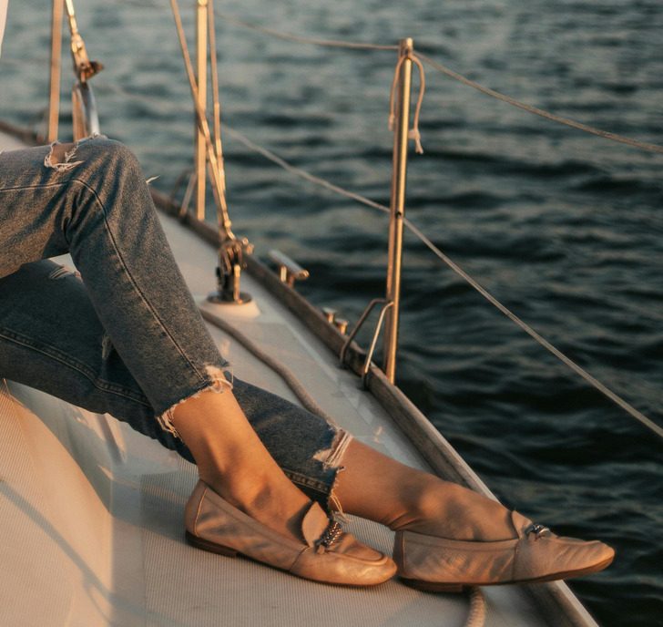 Обувь, которая изначально была придумана для того, чтобы ходить в ней по яхте, должна применяться по назначению. Она не стильная и не поднимает образ на новый уровень. Есть более элегантные модели — например, трендовые сетчатые балетки.