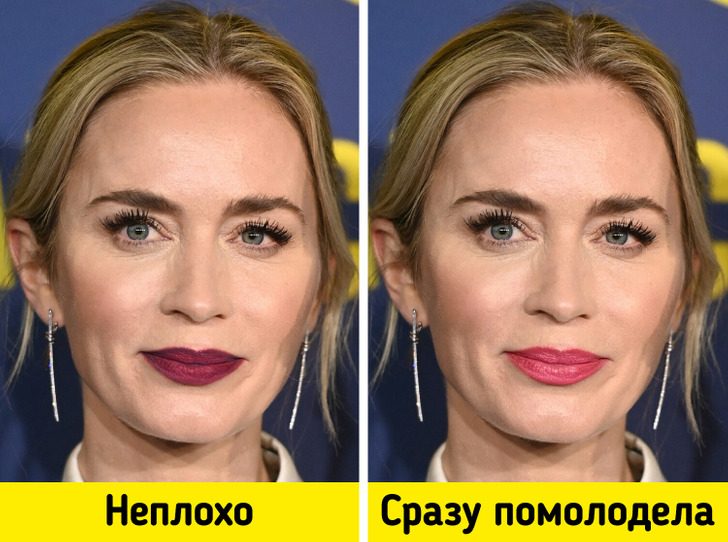 Если же хочется добавить немного цвета, то лучше всего использовать светлые и розовые оттенки — они придадут лицу яркости и свежести. А вот помады темных цветов для этого совершенно не годятся.