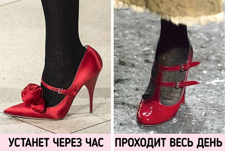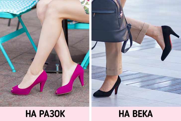 И чрезмерно высокий каблук, и не в меру острый носок могут навредить нашим ножкам. Представьте, какое комбо получится, если выбрать туфли-лодочки на высоком каблуке: давление на подушечки стопы будет очень сильным. Поэтому лучше отдать предпочтение чему-то одному. Например, если выбираете высокий каблук, ищите более широкий носок.