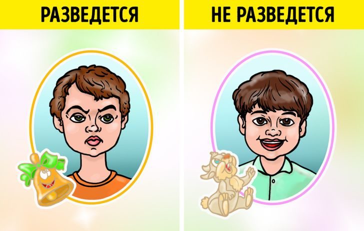 Психологи провели ряд тестов, чтобы понять, можно ли предсказать развод по детским и юношеским фото. В одном из исследований ученые просмотрели снимки из ежегодника колледжа и оценили интенсивность улыбок по шкале от 1 до 10. Оценка была основана на растяжении двух мышц: одна подтягивала рот, а другая создавала морщинки вокруг глаз.