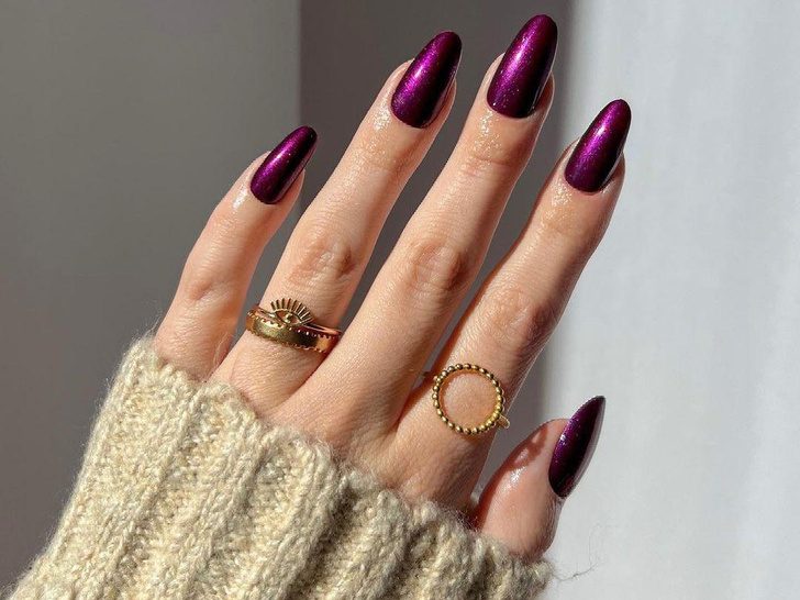Фиолетовый лак с перламутровым сиянием не просто выглядит неактуально, но и добавляет возраст своей обладательнице. Этот цвет старит руки, из-за чего они выглядят неухоженными, даже если вы регулярно посещаете мастера по маникюру.