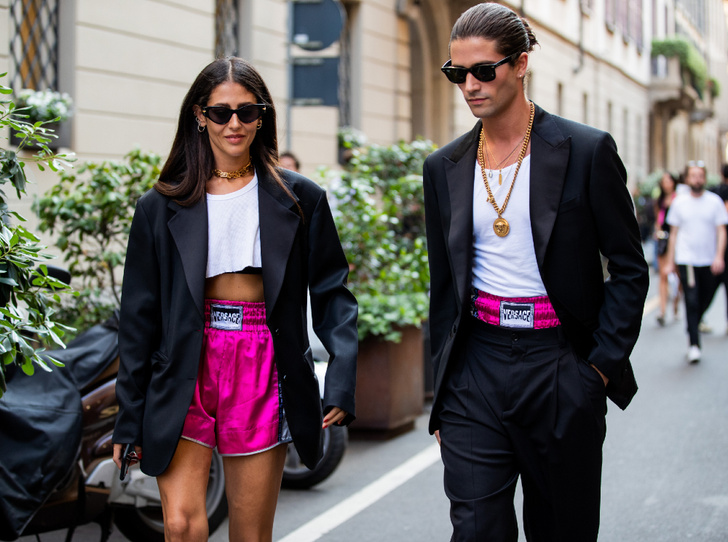 Актуальное решение, которое набирает популярность на подиумах последнее время, — надевать яркие топы без бретелей прямо поверх жакетов. Выглядит крайне небанально, свежо и при этом позволяет вам иметь более маневренный гардероб: хотите — носите топ на голое тело, хотите — поверх рубашек, а хотите — комбинируйте с жаетами.