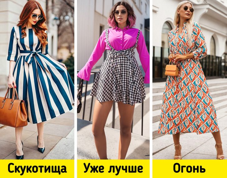 А вот платье с цветастым геометрическим узором само по себе станет основой образа. Поэтому дополнять его лучше минималистичными и нейтральными деталями.