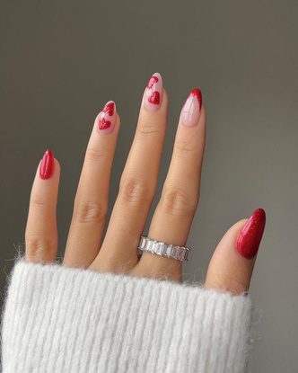 Кто сказал, что дизайн с сердечками подходит только на День святого Валентина? Мы считаем, что этот романтичный нейл-арт можно носить в любое время года. Любительницам минимализма понравится вариант маникюра с сердцами на больших пальцах или по одному небольшому рисунку на каждом пальчике. В качестве основы дизайна можно выбрать нюдовую или молочную базу.