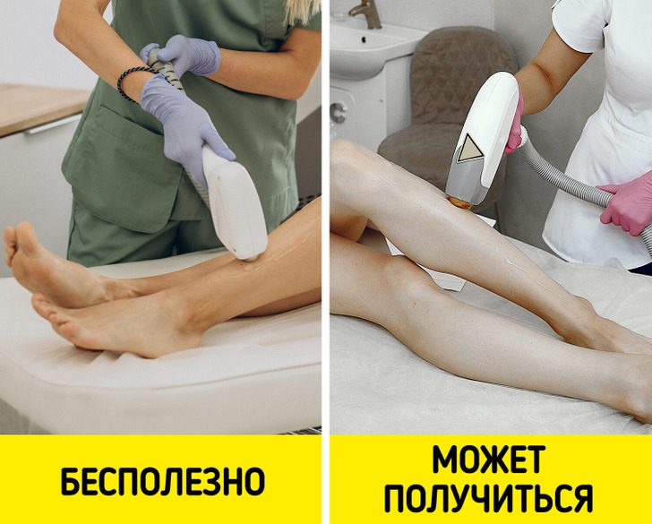 Эта процедура, пожалуй, самая безопасная в нашем списке. В редких случаях она может привести к покраснению кожи, рубцам, ожогам и волдырям. Вот только подходит она далеко не всем. Лазер хорошо работает на светлой коже с темными волосами, а вот для загорелой кожи со светлыми волосами процедура практически бесполезна.