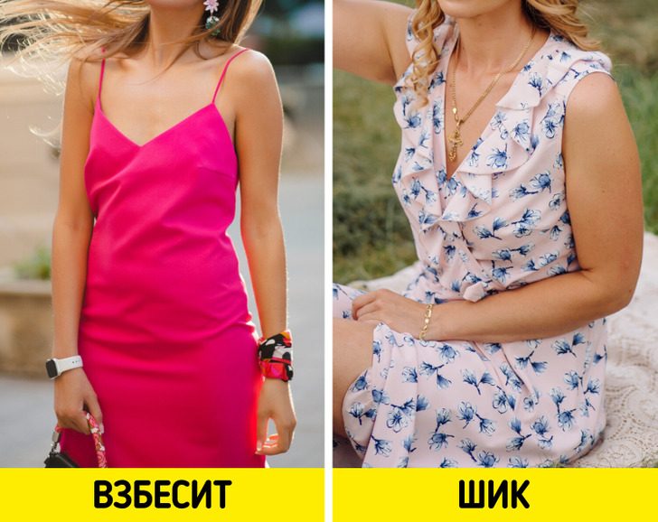 Бюстгальтер должен будет отвечать сразу нескольким требованиям: обеспечивать нужную поддержку, быть незаметным сзади и не соскальзывать при ходьбе. Куда лучше найти более закрытое платье из легкой ткани.