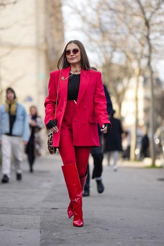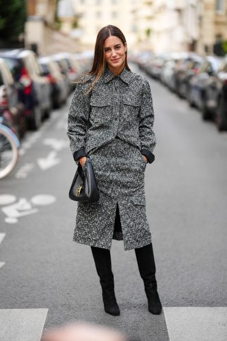 Если не брать базовые черный и белый цвета, которые по умолчанию подходят девушкам с любым тоном волос, то один из наиболее выигрышных и эффектных вариантов для русоволосых — серый. Градация оттенка также варьируется от светлого до мокрого асфальта — в зависимости от своего цветотипа и тона волос вы можете подобрать для себя наилучший вариант. С чем выигрышно будет смотреться такая одежда? Рекомендуем стилизовать ее с лиловый, ягодными оттенками, а также бирюзой.