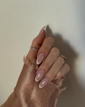 Сливочный френч можно сделать еще необычнее, если сделать его двойным или добавить лунки. Такой маникюр подойдет как длинным, так и коротким ногтям любой формы. А сочетать двойной френч можно и с другим и дизайнами, например, объемными элементами или минималистичными рисунками. А для того, чтобы ногти выглядели еще более изящно, добавьте к френчу жемчужную втирку.