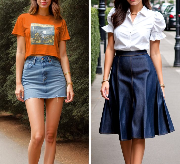 С юбкой миди тоже получится классный летний наряд. Лишь дополните ее блузкой с открытыми плечами. А для придания образу воздушности стоит подобрать вещи белого цвета. Юбку миди из синего денима можно также сочетать с блузкой, украшенной кокетливыми оборками