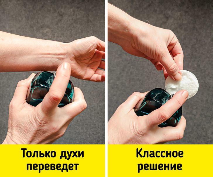 Некоторые люди советуют захватить с собой несколько ватных дисков, смоченных в духах или туалетной воде. И при необходимости аккуратно протирать стратегические зоны: запястья, шею и подколенные ямки. Это не только экономит парфюм, но и поддерживает приятный запах на необходимом уровне.