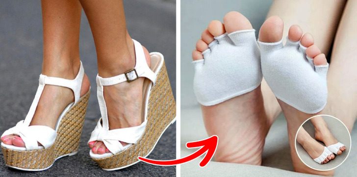 Босоножки на танкетке с широкими ремешками, могут быть не самой удобной обувью. Ремни зачастую натирают кожу, а стопа в такой обуви начинает болеть. При этом носить босоножки с обычными носками навряд ли получится. Тут на помощь могут прийти специальные носки, которыми обычно пользуются танцоры и гимнасты. Это изделие напоминает эластичный бандаж, охватывающий переднюю часть стопы с прорезями для пальцев и специальными подушечками под плюсной, которые уменьшают нагрузку.
