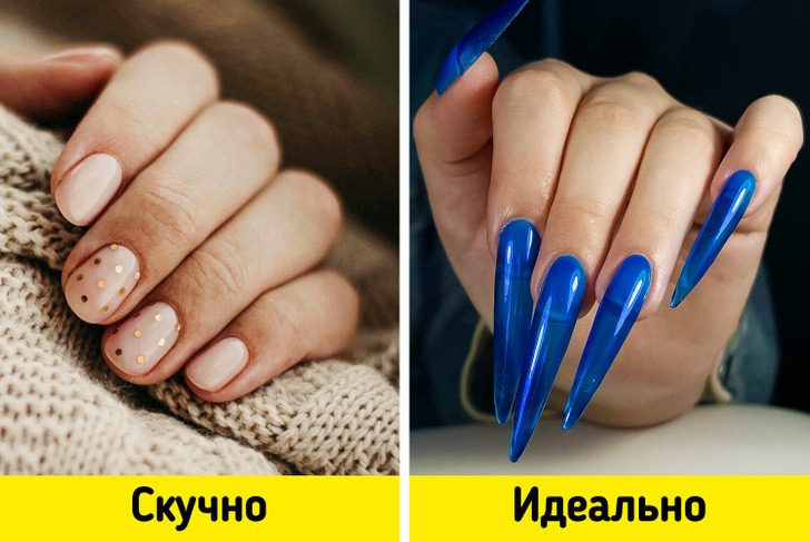 Нельзя сказать, что короткие ногти — это прошлый век. Такая длина всегда будет классикой, ведь подходит на любой случай. Но, если честно, иногда это выглядит скучно… Если хочется быть максимально в тренде, то длинные ногти-стилеты — то, что надо. Не обязательно украшать их всем подряд, даже базовое однотонное покрытие на такой длине будет выглядеть ярко.