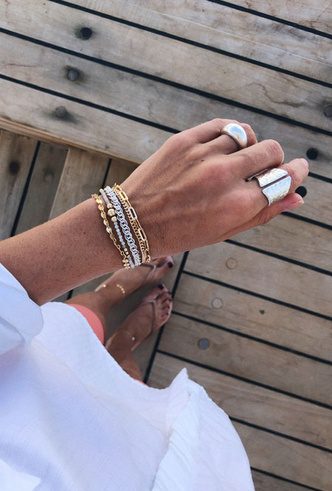 Придерживайтесь единого стиля при выборе двух разных металлов. Например, носите одновременно два одинаковых изделия (золотое и серебряное) из одной ювелирной коллекции: часто одна и та же модель выпускается сразу в нескольких металлах, например, кольца галь бренда JerusalemBazar.