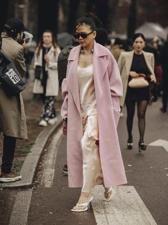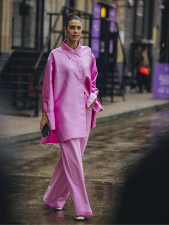 Завершает подборку самых модных цветов осени и зимы 2024/25 розовый. Хотя ажиотаж вокруг барбикора уже давно спал, оттенки бабл-гам и сладкой ваты по-прежнему появляются в стритстайлах и на подиуме. Мы любим их за то, что они освежают образы, добавляют нотку романтичности и кокетства. Необязательно одеваться в розовый с ног до головы — одного топа под пиджак или рубашку будет вполне достаточно.