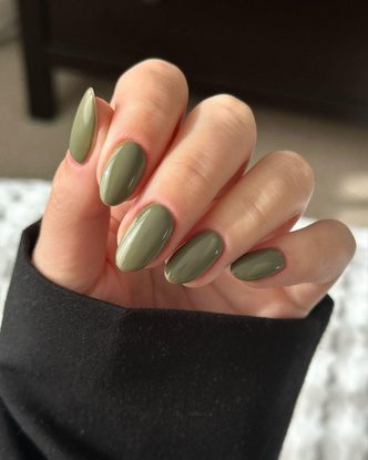 Оливковый маникюр — мастхэв на предстоящую осень. Во-первых, он отлично смотрится как с матовым, так и с глянцевым финишем. А во-вторых, этот благородный оттенок зеленого будет гармонировать с любым оттенком кожи, от фарфоровой до смуглой.