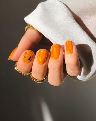 Новый нейл-тренд, успешно вытеснивший маникюр «тыквенный латте», постепенно завоевывает внимание любительниц оригинального дизайна. А все потому, что покрытие напоминает блеск драгоценного камня — янтаря, который переливается золотисто-медовыми оттенками с небольшими вкраплениями коричневого.