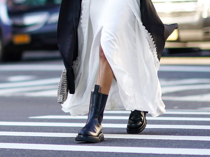 Не многие решатся надеть закрытую обувь летом, но, поверьте, оно того стоит. Вспомните самые классные и эффектные образы звезд и модных инфлюенсеров — они обожают сочетать летние вещи с осенними сапогами и ботинками. Модели на шнуровке и челси на грубой подошве добавят аутфиту с платьем недостающей дерзости, а высокие сапоги в стиле вестерн будут круто смотреться с чайными платьями и короткими моделями на запах.