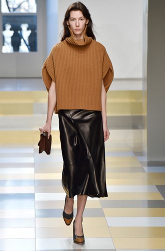 И все же не забывайте, что вы в офисе и отдайте предпочтение свитерам, которые держат форму и не выглядят растянутыми, и юбкам и брюкам из качественных плотных материалов, например, трендовых замши и мягкой кожи. Хороший вариант, чтобы силуэт остался собранным — укороченный джемпер и низ с завышенной талией. На руку сыграют и аксессуары — классические оксфорды, сдержанные лоферы и сумки геометричной формы.