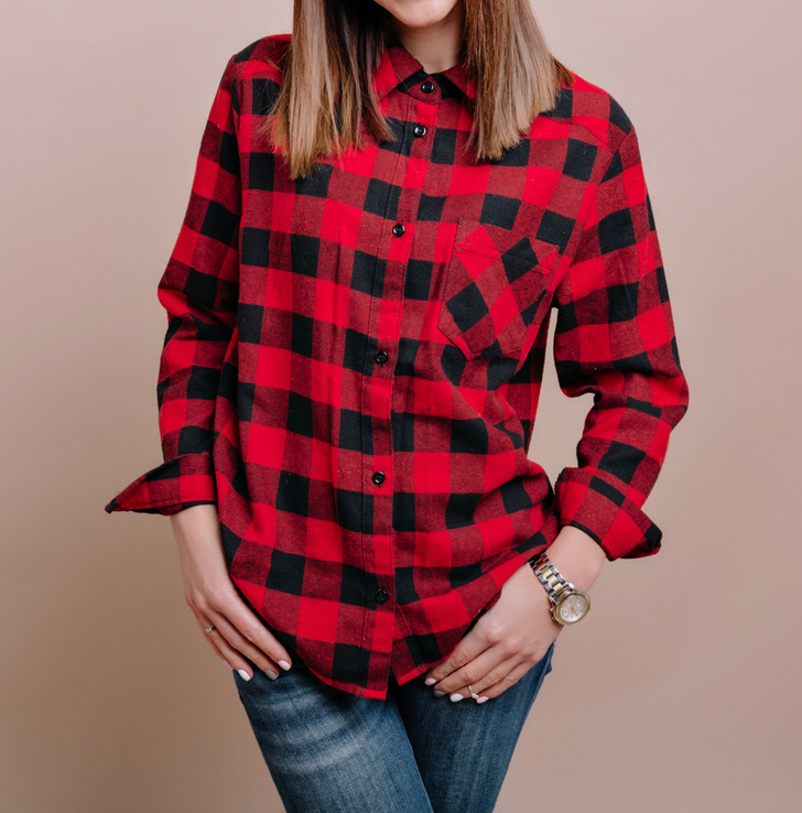 Клетчатый рисунок может смотреться неплохо. Но не на рубашке, особенно свободного кроя и небрежного стиля. Такая вещь выглядит крайне неаккуратно и лишает образ женственности.