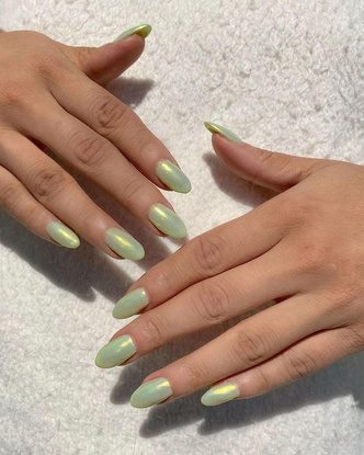 Ногти «матча-латте» — маникюр, выполненный в цвете японского зеленого чая матча. Сделать ногти в этом трендовом оттенке — прекрасный повод продлить лето на пару недель.