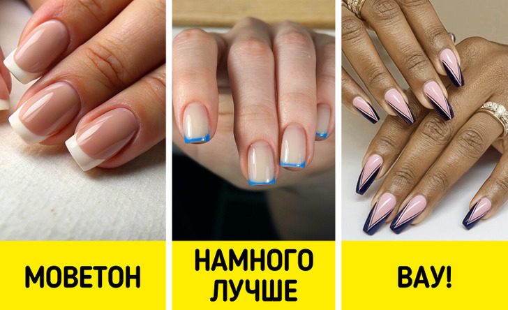 Если же вы готовы к экспериментам, то модные эксперты советуют попробовать двойной френч. Это когда под основной аркой есть еще одна, но более тонкая. Можно комбинировать цвета или сделать кончик однотонным. В любом случае получается стильно и необычно.