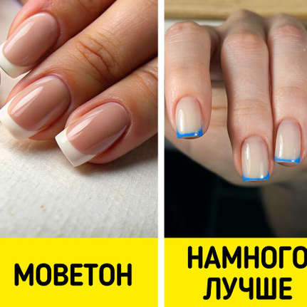 Классический квадратный френч с белым кончиком — уже практически моветон. Сегодня его можно сделать намного интереснее. Например, вместо белых арок попробовать цветные. А еще необязательно наращивать ногти, чтобы придать им «ту самую» форму — можно сделать френч даже на коротких ногтях.