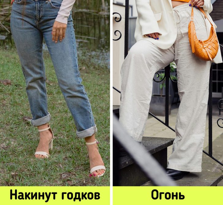 А вот от джинсов-бойфрендов стоит держаться подальше. Такой фасон вообще мало кому идет, а еще такие штаны могут накинуть годков. Уж лучше выбрать более свободную модель прямого кроя и с минимумом декора.