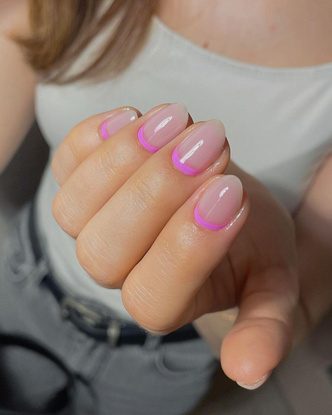 Пускай за окном уже осень, мы пока не готовы расставаться с пастельными оттенками, которые традиционно делают в теплое время года. Французский маникюр с полоской нежного цвета идеально дополнит любой образ и сделает его более женственным. Можно использовать любые оттенки: от небесно-голубого до персико-розового.