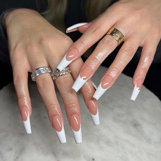 Поэтому ультрадлинные ногти с толстым выделением ногтевого края — это не про эстетичный и утонченный френч. Более того, такая длина и форма повышает риск того, что покрытие долго не прослужит.