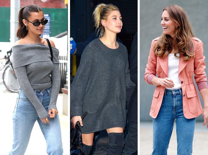 Объем в области бедер — то, чего стоит избегать всеми способами. А брюки и джинсы «бананы» и «галифе» концентрирую внимание именно на этой зоне. Во-первых, такие модели уже давно не в моде, поэтому смотрятся скучно и неактуально. Во-вторых, даже когда они были в тренде, мало, кто смотрелся в таких стильно и гармонично, поэтому поводу хранить и их в свой гардеробе попросту нет.