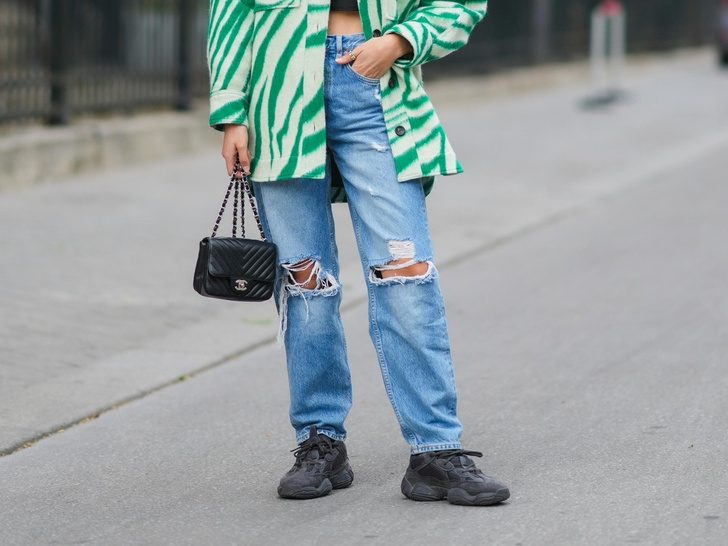 Если все же очень хочется носить именно рваные джинсы, то выбирайте модели, которые не облегают ноги, а количество прорех будет минимальным.
