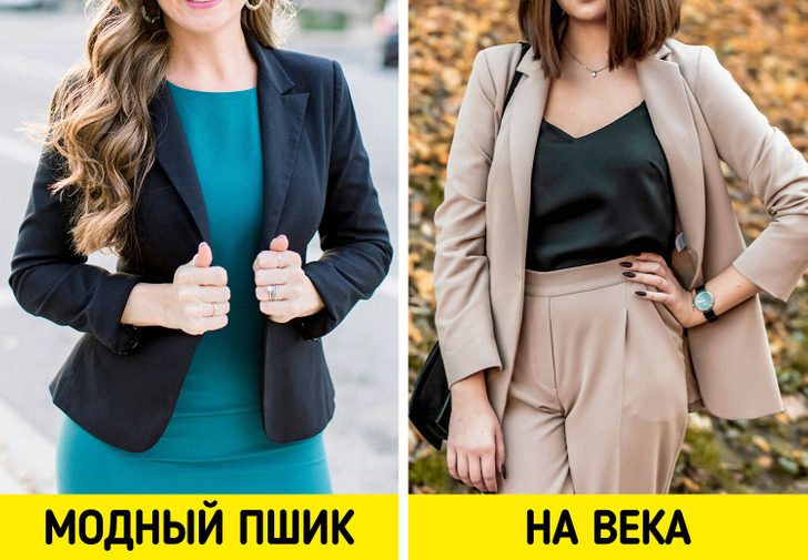 Пиджак — вещь универсальная, практически всегда выглядит элегантно, отлично сочетается с другими предметами гардероба. Однако если уж выбирать вещь «на века», то лучше отдать предпочтение свободным моделям. Да, сейчас в тренде приталенные пиджаки, однако возможно это лишь модный пшик, от которого в следующем году не останется и следа.