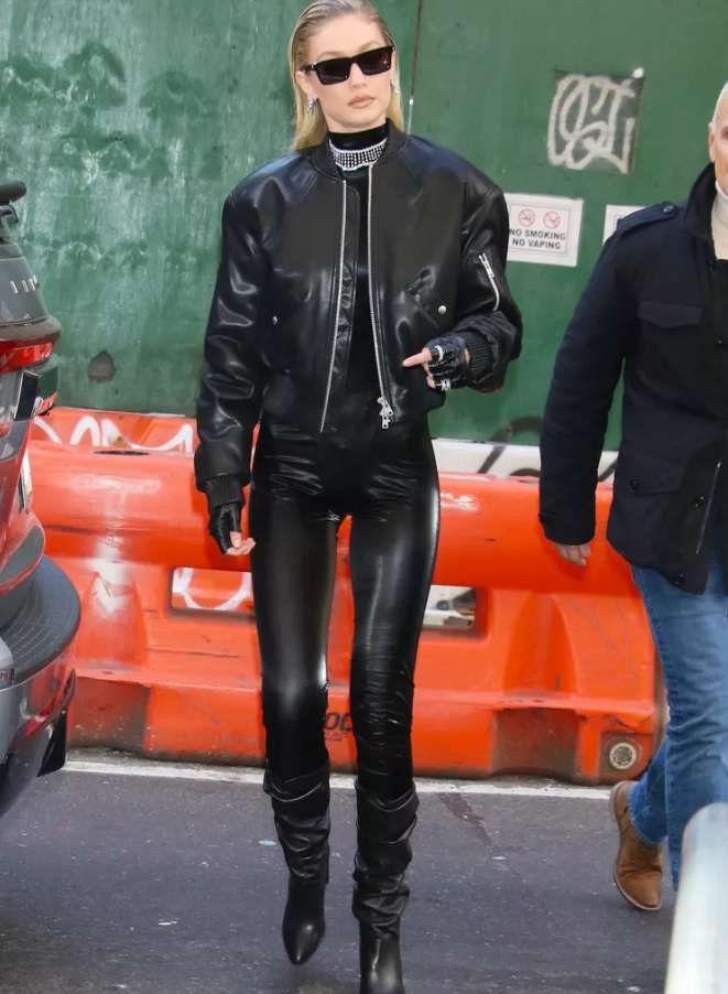 Пара кожаных брюк и подходящая к ним куртка-бомбер — это нестареющая комбинация, которую любят такие звезды уличного стиля, как Джиджи Хадид. «Несмотря на то, что этот образ, безусловно, привлекает внимание, вы можете носить его практически по любому поводу — и на прогулку, и на работу», — утверждает стилист.