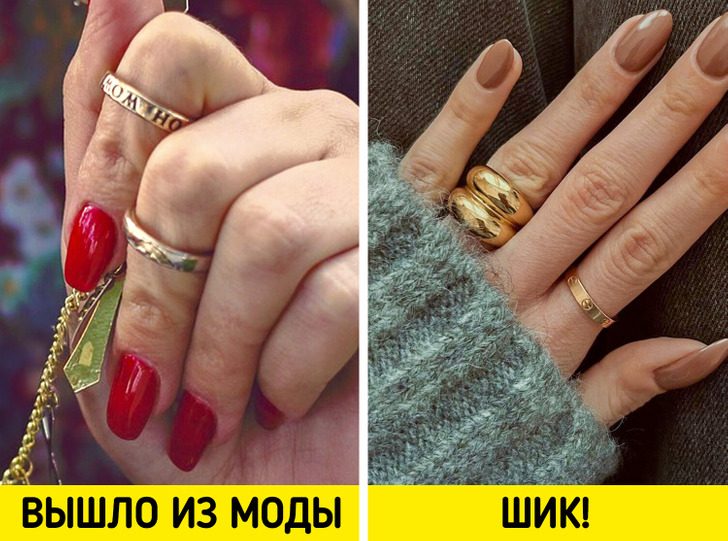 Сейчас модные блоггеры не носят тонкие кольца на фалангах пальцев. Да и такого, чтобы на каждом пальце было по кольцу, тоже не встретишь. Несколько колец на одной руке — уже достаточно.