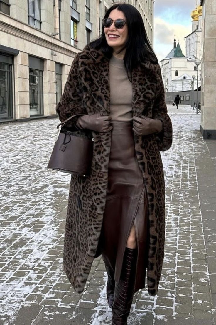 Вы можете носить этот образ осенью с курткой или пальто. Зимой добавляем кожаные сапоги и длинную шубу.