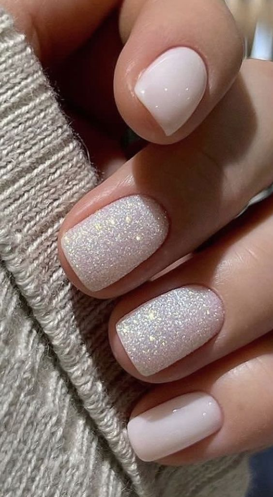 Белый маникюр – самый подходящий вариант для зимы. А чтобы покрытие не выглядело скучным, стоит использовать втирку или глиттер. Простой и в то же время праздничный вариант.