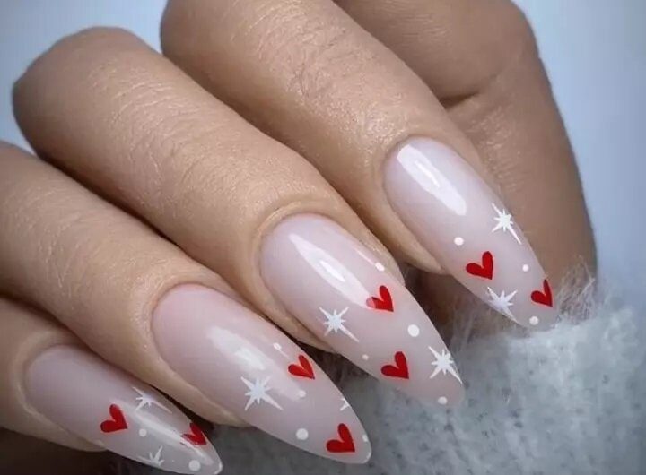 Простые вариант дизайна с использованием «зимних» мотивов, в этом примере использовано изображение сердечек и звездочек. Можно выбрать и более сложные варианты росписи.