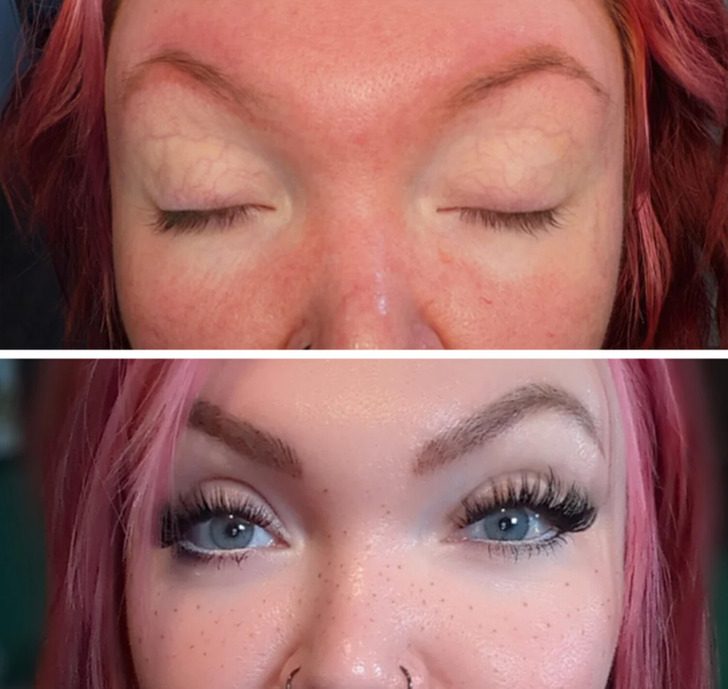 «Фото до и через пару часов после процедуры создания нано-бровей. Я с нетерпением жду, когда они заживут!»