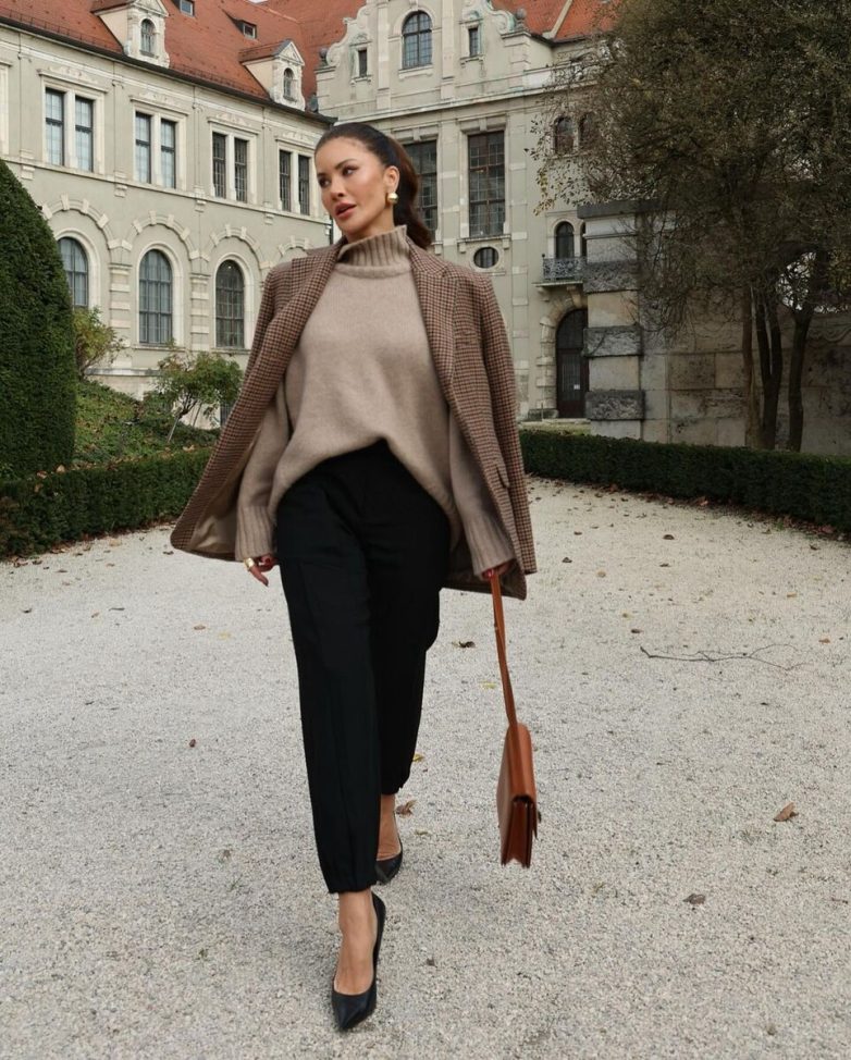 Женственность всегда в моде: в 2025 году делаем ставку на приталенные пиджаки, жакеты и платья из плотных, качественных материалов. Такой крой подчеркнет талию, не обтягивая фигуру, создавая изысканный и элегантный образ. Выбирайте модели из твида, шерсти или плотного трикотажа.