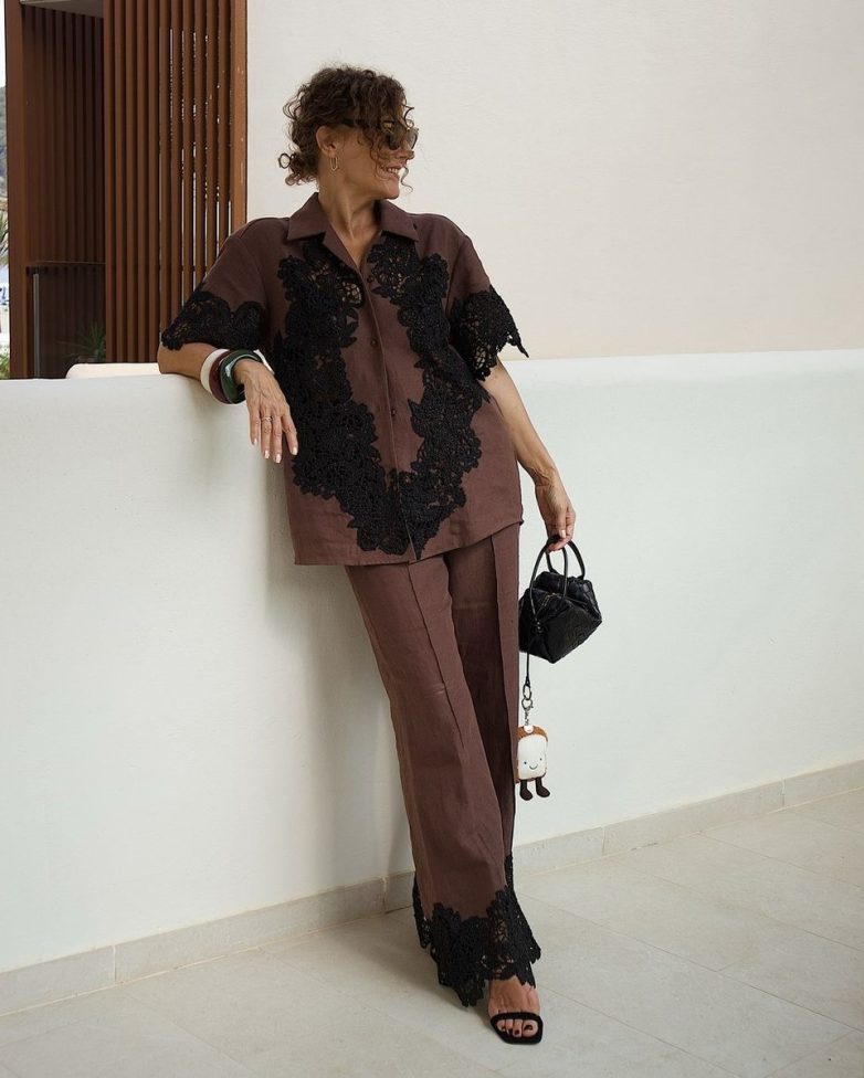 Изысканные кружева, воздушные воланы, благородные цветочные принты и пастельные оттенки — все это придает образу легкость, женственность и утонченность. Платья с акцентом на талии, блузки с рукавами-фонариками или костюм с кружевной отделкой подчеркнут вашу стиль и создадут изысканный силуэт. Дополните образ современными украшениями или элегантными туфлями-лодочками.